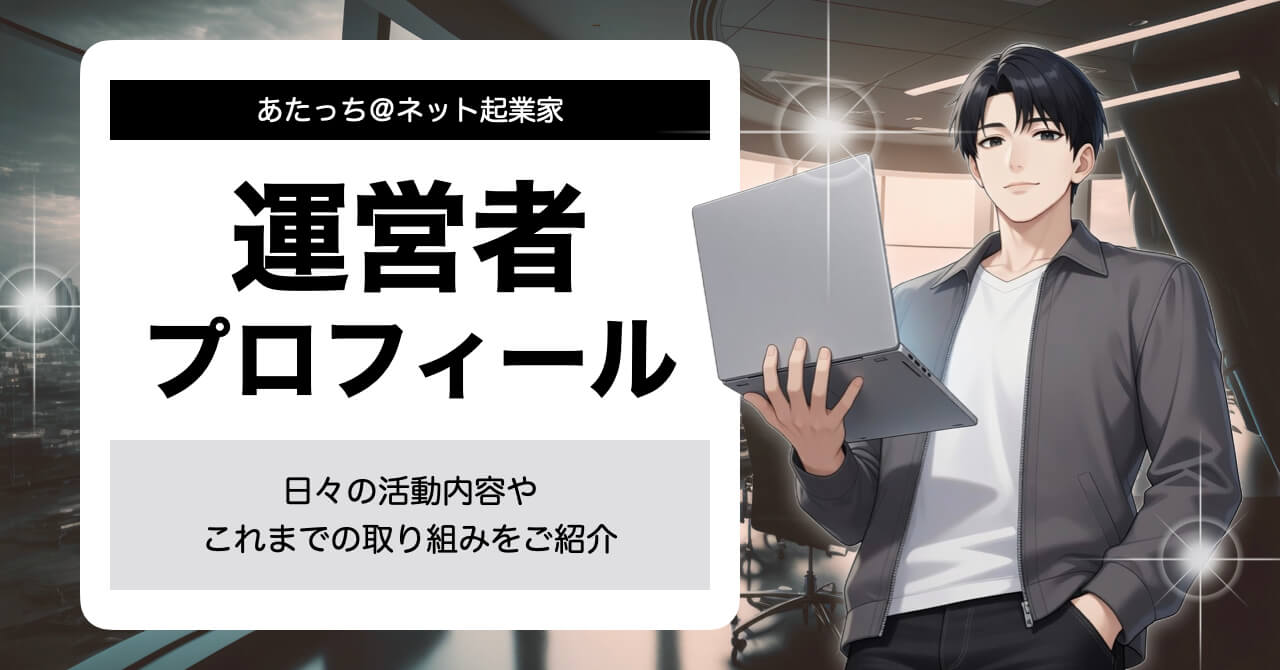 ご覧いただきありがとうございます。サイト運営者のあたっちです。「自宅で、ひとりで、顔出しなしで稼ぐ」をモットーに、アフィリエイトやコンテンツ販売などのネットビジネスに “ひっそり” と取り組んでいます。